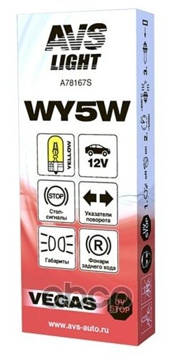 Лампа AVS Vegas 12V. WY5W yellow (W2,1x9,5d) BOX(10 шт.) информация: