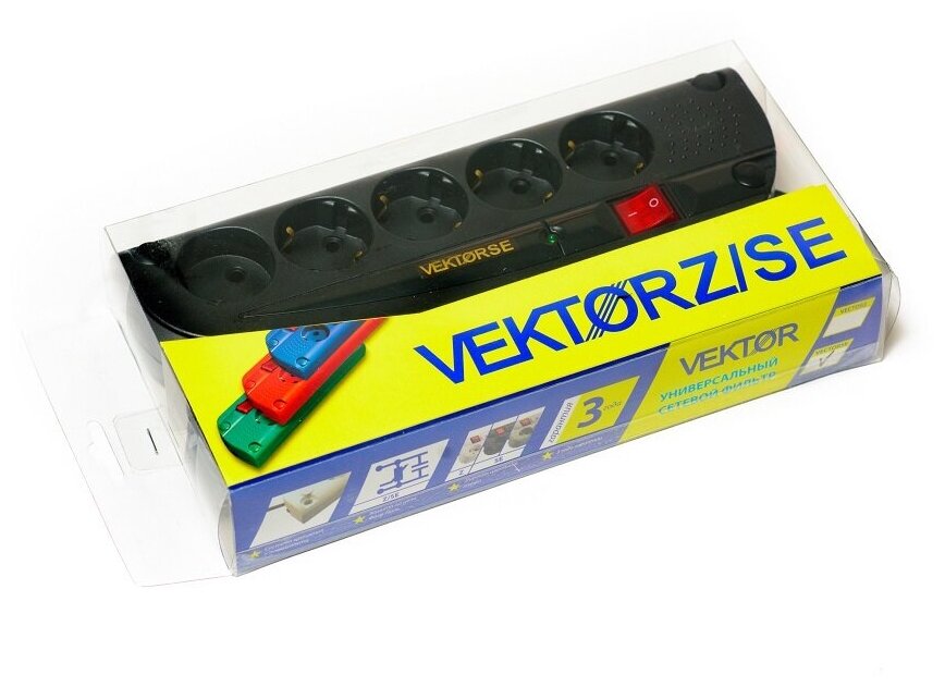 Сетевые фильтры Vektor Сетевой фильтр Vektor SE 2.2 кВт черный 3м (для аудио-видео техники)