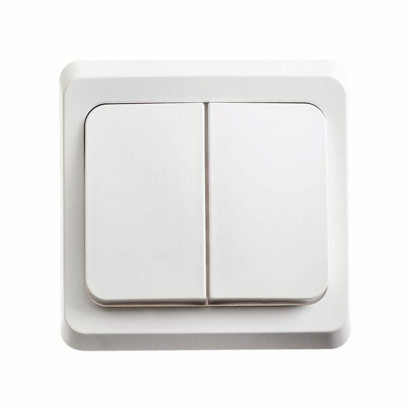 Выключатель двухклавишный Bylectrica Пралеска, брызгозащищенный, открытой установки, 6А, 250В, белый. А5 6-224.
