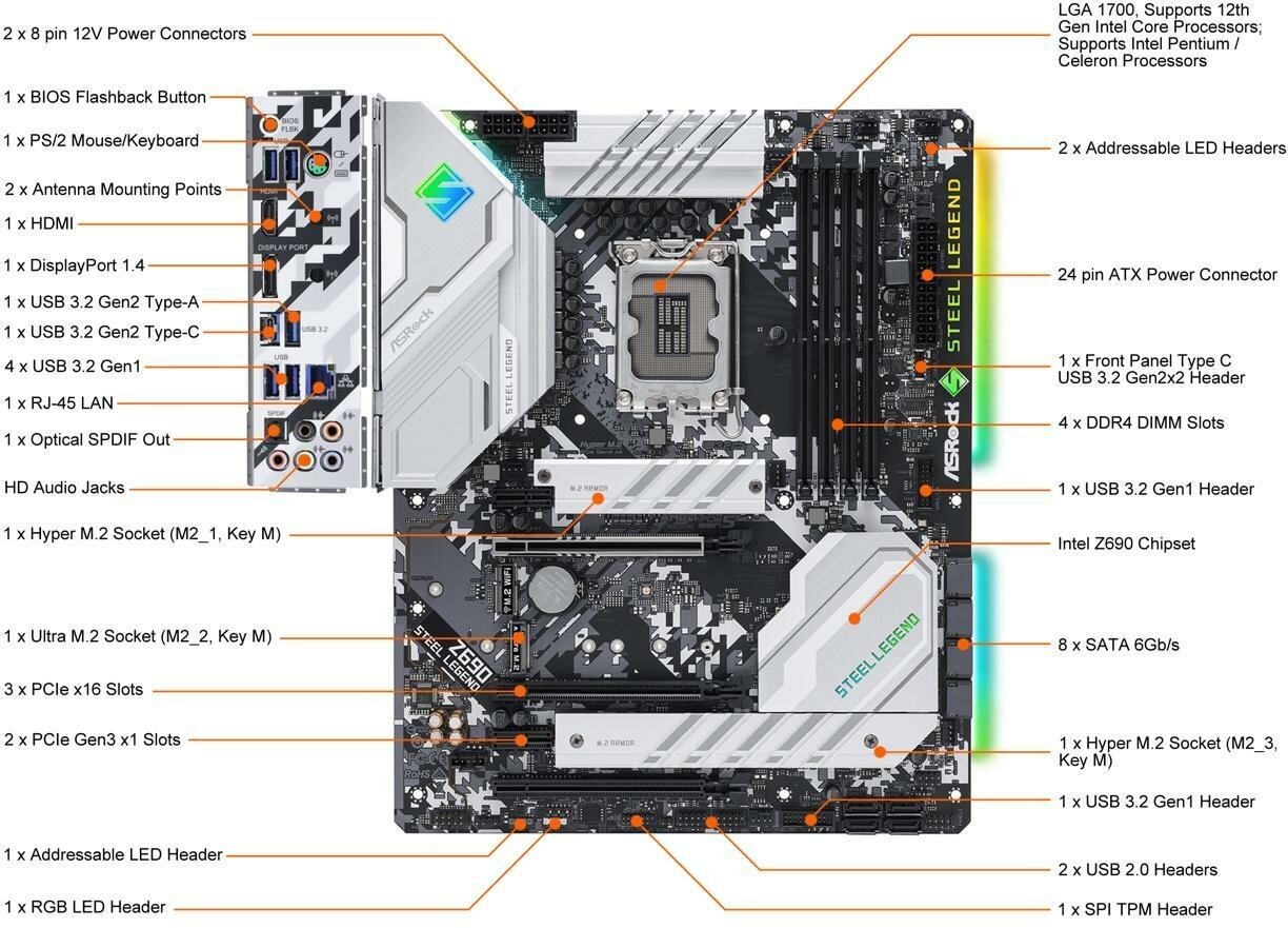 Материнская плата ASRock Z690 Steel Legend LGA 1700 Intel Z690 SATA 6Gb/s DDR4 ATX Intel