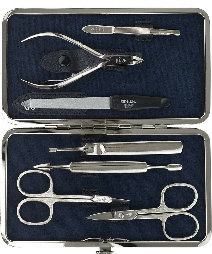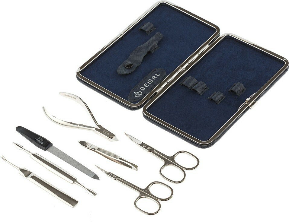10 цен на Маникюрный набор DEWAL, 7пр. Футляр: натуральная кожа, цвет синий, 905BLUE