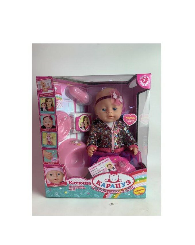 Карапуз Пупс Катюша 45 см функциональный, пьет, писает, плачет Y45BB-COSM-35602 с 3 лет
