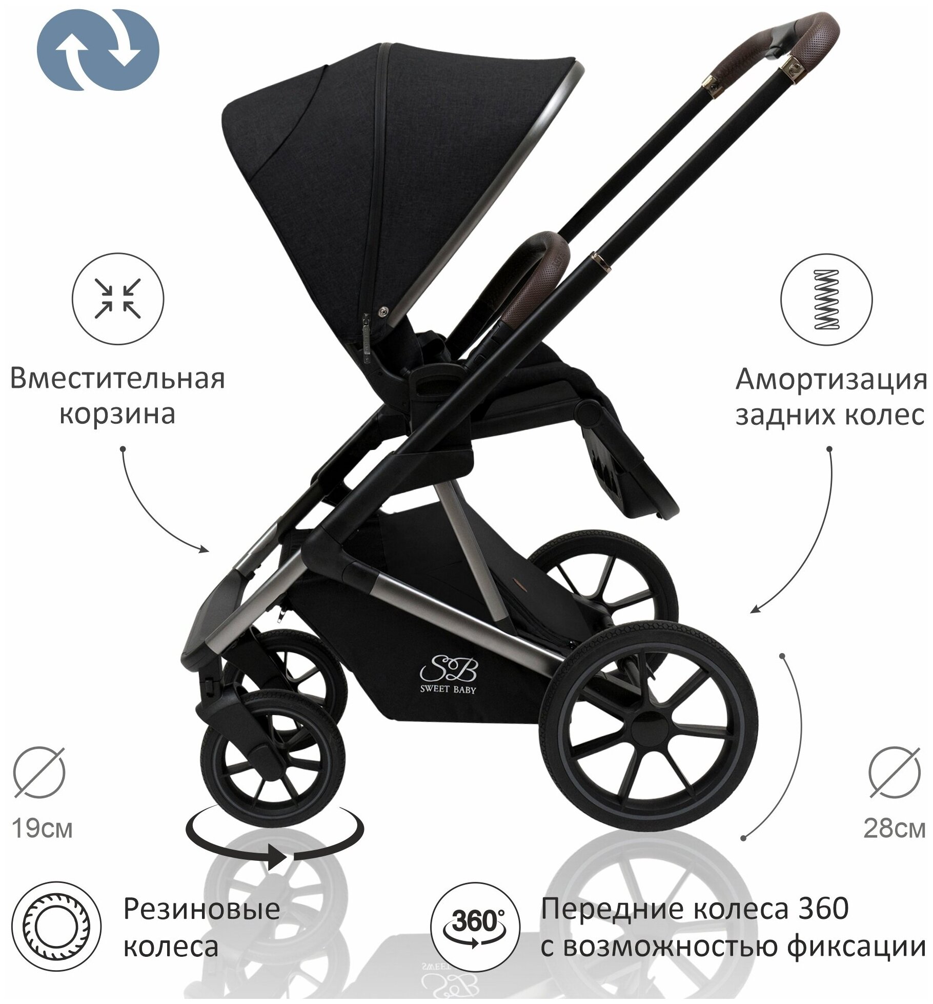 Коляска 2в1 - Sweet Baby Ricci, цвет Black / Air (Чёрный) 52 053 ₽