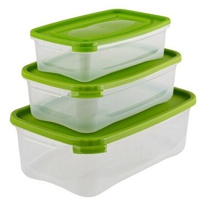 Контейнер пищевой комплект 3 шт.: 0,7 л, 1,2 л, 2,2 л, ланч бокс, каскад, прозрачный/зеленый, 59003, 435900365 (цена за 1 ед.товара)