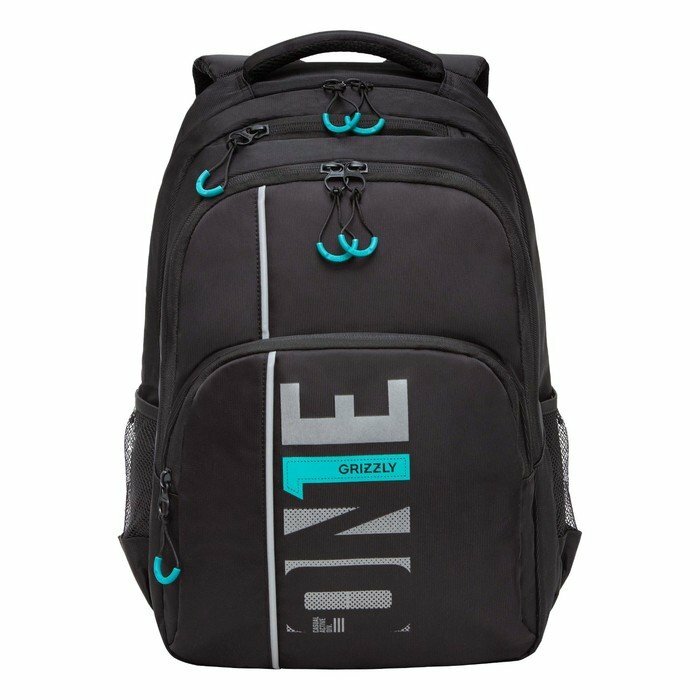 Рюкзак для мальчиков (Grizzly) арт RU-330-5/3 черный-бирюзовый 32х45х23 см