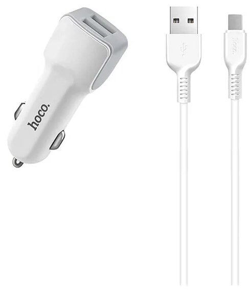 Автомобильное зарядное устройство (АЗУ) Hoco Z23 (2 USB) + кабель MicroUSB, 2.4 А, белый
