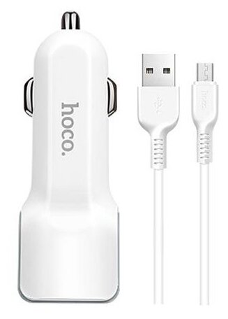 Автомобильное зарядное устройство Hoco Z23 White зарядка 2.4А 2 USB-порта + кабель microUSB, белый