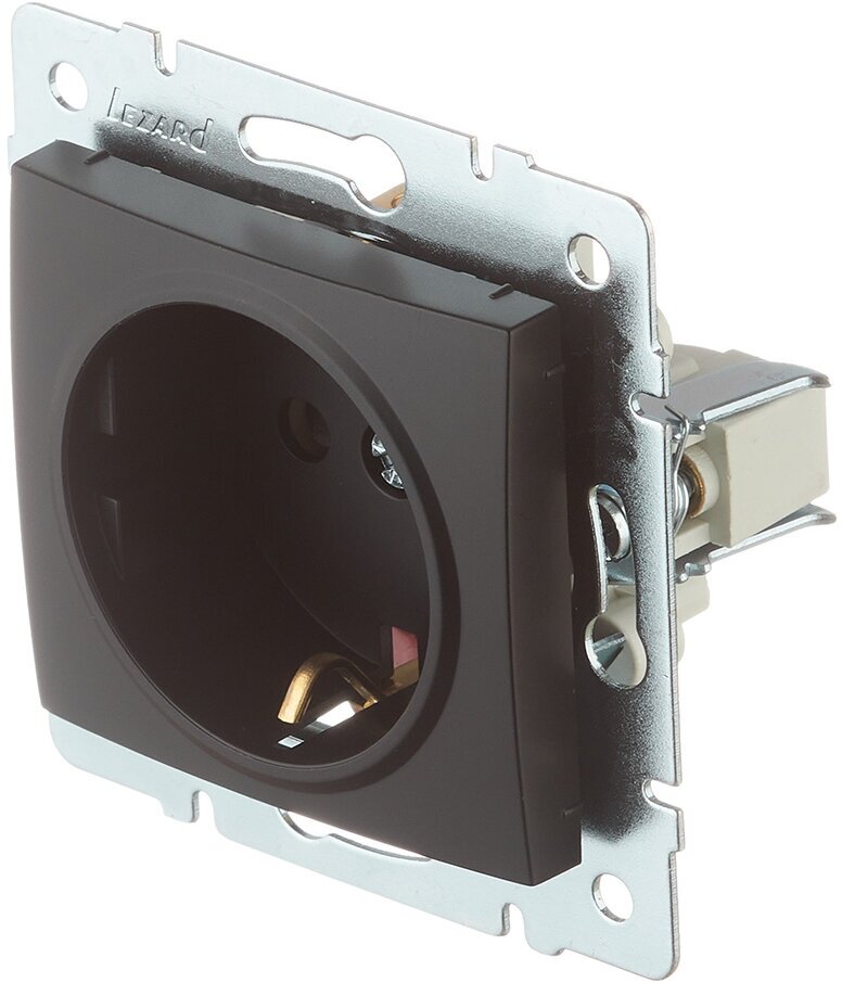 Розетка LEZARD 1-м СП Karina защ. шторки с заземл. термопласт черн. бархат, 707-4288-124B