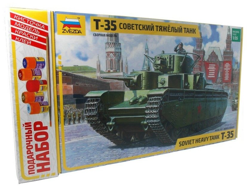 10 цен на Сборная модель ZVEZDA Советский тяжелый танк Т-35, подарочный набор, 1/35, ZV-3667П