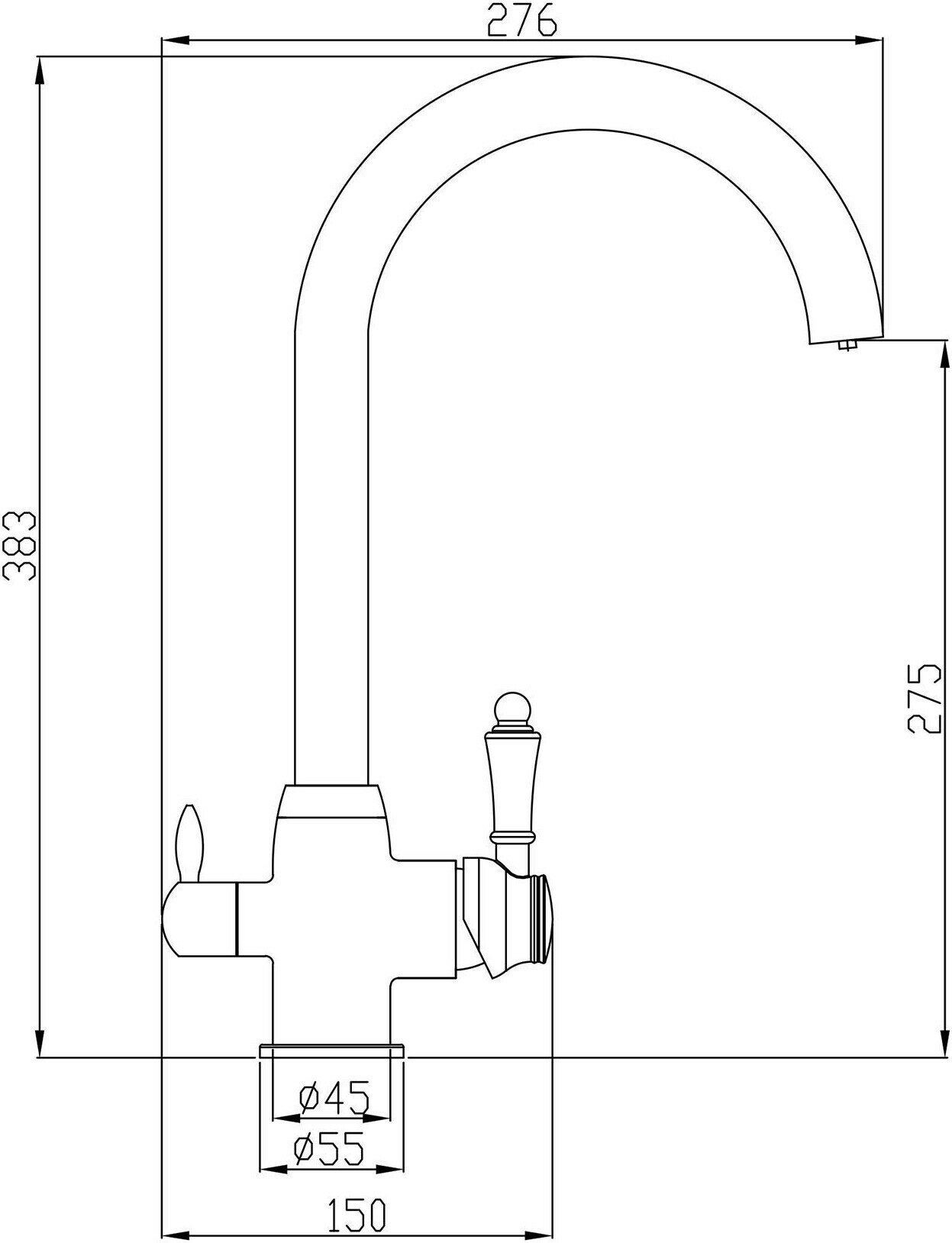 | Длина излива | 276 мм |