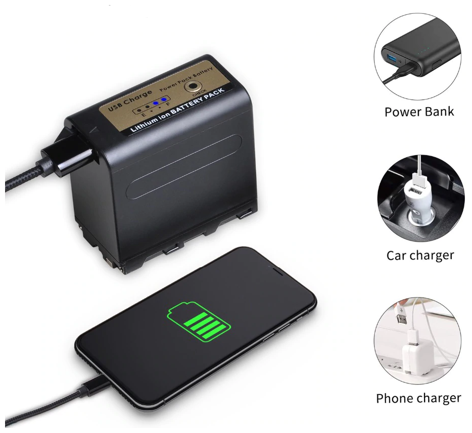 Отзывы на Аккумулятор АВС NP-F750 (F770), 7.2В 5200mAh для камер Sony c функцией заряда от USB и Power bank