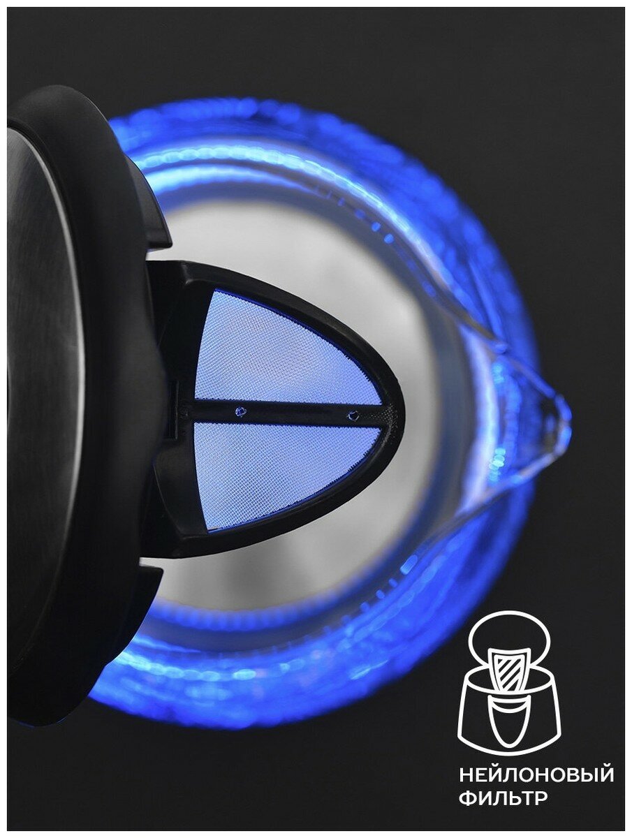 Чайник электрический стеклянный LEX LXK 30010-1, объем 1,2 л, подсветка.