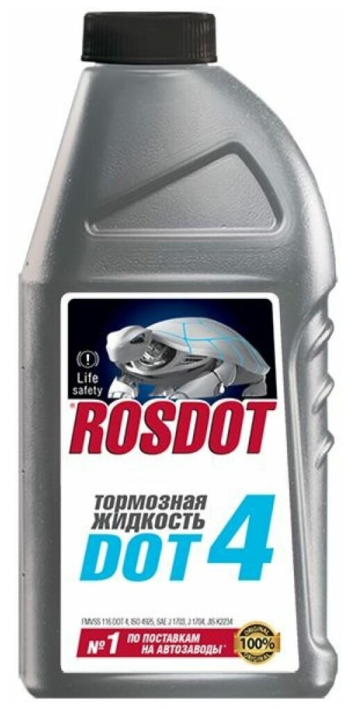 Жидкость тормозная 910г - Жидкость тормозная DOT 4. ROSDOT Отвечает требованиям международных стандартов: SAE J 1703 /1704, FMVSS 116 DOT-4, ISO 4925, JIS K 2233. 430101H03