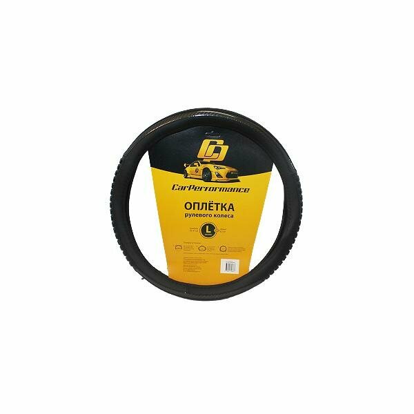 Оплётка руля CAR PERFORMANCE CP-2060 BK/BK (L), экокожа, две силиконовые вставки под хват, гладкая основа с вставкой под карбон чёрый, разм. L, информация: