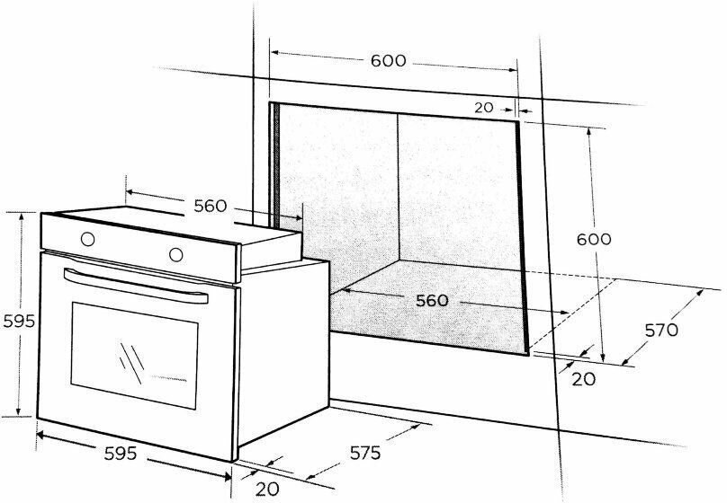 Духовой шкаф встраиваемый LEX EDM 077 C IV, 60 см, с конвекцией, механические ручки, объем 60 л, аналоговый таймер, телескопические направляющие.