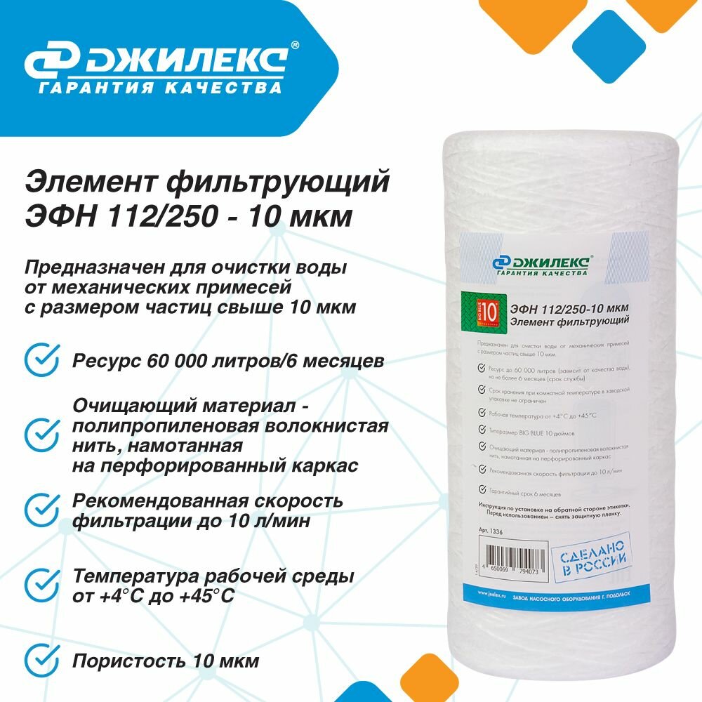 Элемент фильтрующий ЭФН 112/250-10мкм (10 ББ), до 60 000 л., Джилекс 1336 1 998 ₽