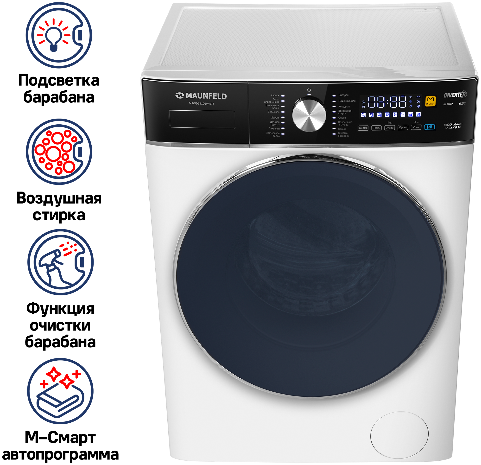 Стиральная машина Maunfeld MFWD14106WH03 класс: B загр.фронтальная макс.:10кг (с сушкой) белый инвертер