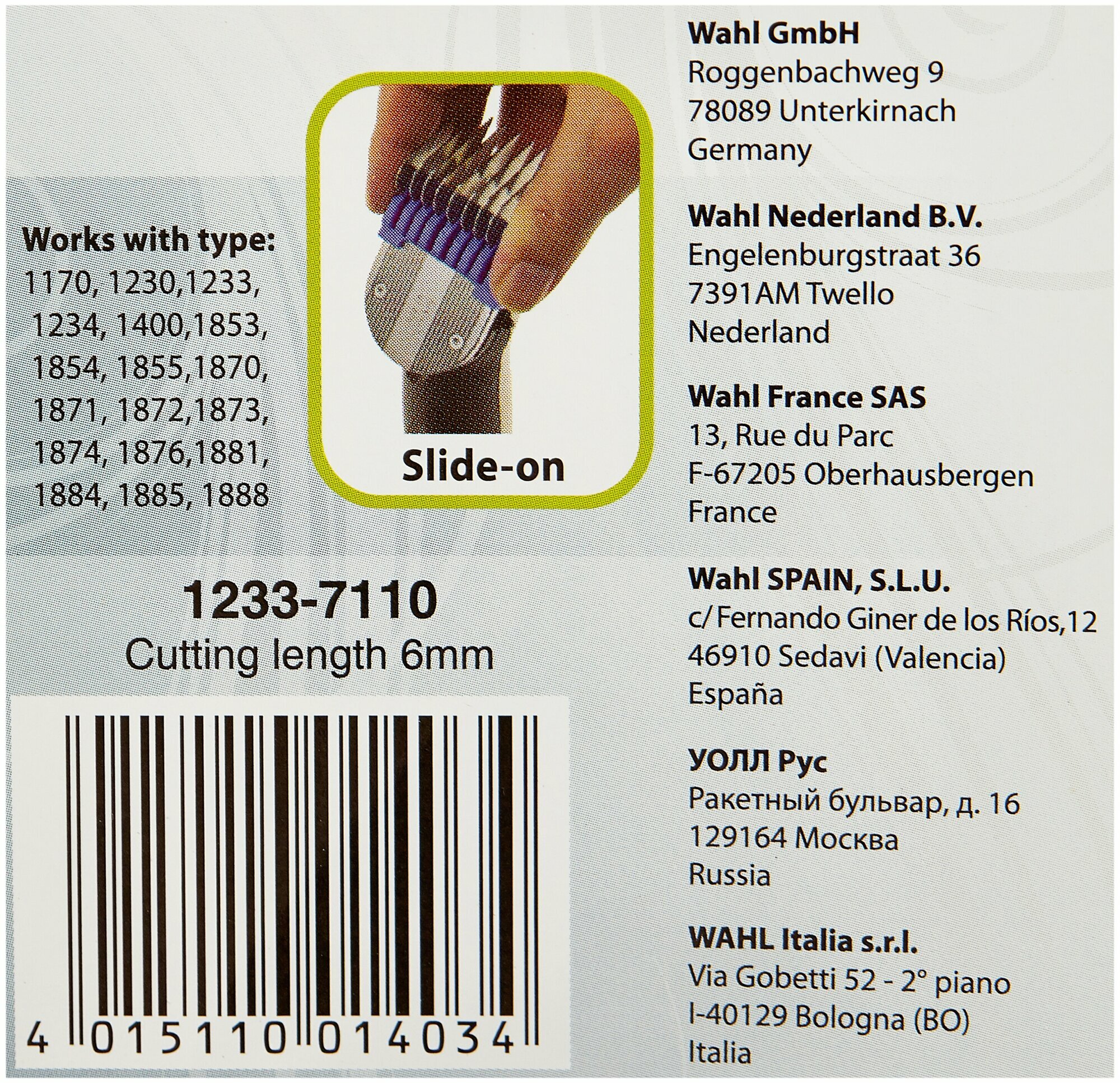 | Дополнительная информация | подходит для машинок Moser 1230 Rex, 1233, 1854 Arco, Wahl 1234 FlexiCut, 1870 Bravura, 1872 Super Groom |