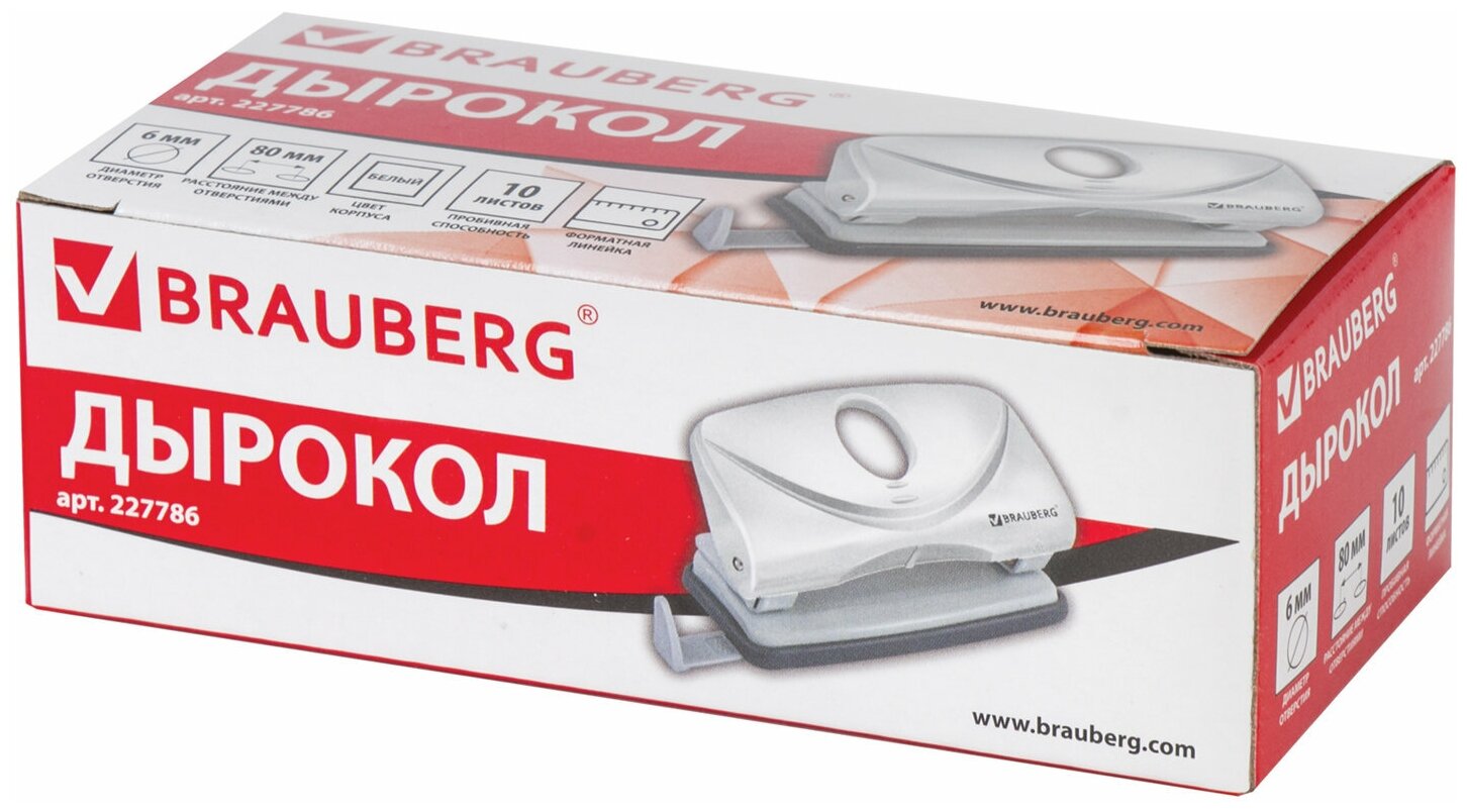 Дырокол Brauberg "Original", до 10 листов, белый (227786) информация: