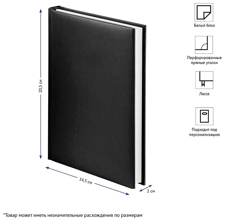 Ежедневник недатированный А5 OfficeSpace Ariane (160 листов) обложка балакрон, черная (En5_12433), 20шт. информация: