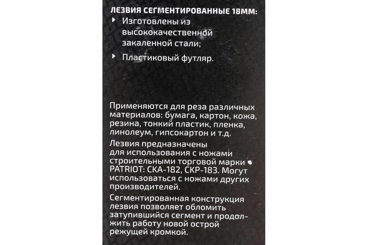 Лезвия сегментированные CBB-184 (10 шт; 18 мм) PATRIOT 350004422 информация:
