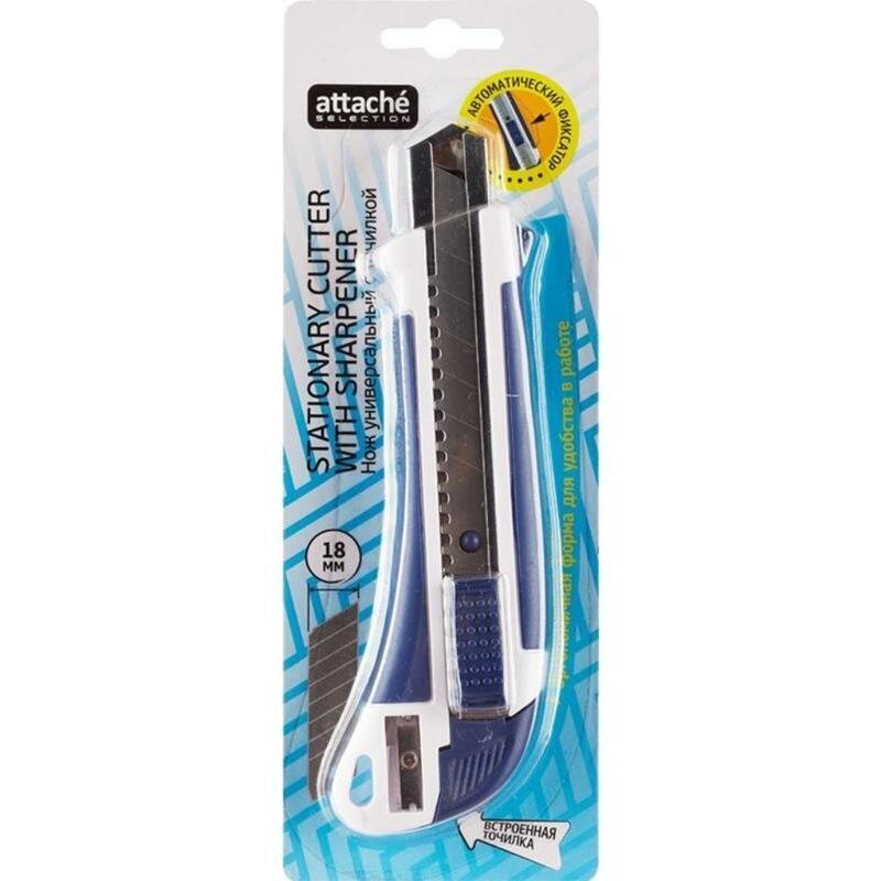Нож канцелярский Attache Selection с антискользящими вставками и точилкой для карандаша (ширина лезвия 18 мм)