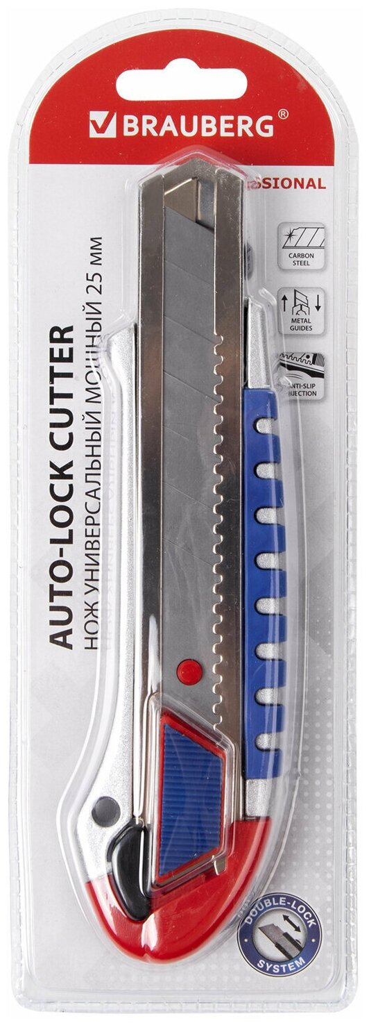 Нож универсальный Brauberg мощный, ширина 25 мм, "Professional", металлический корпус