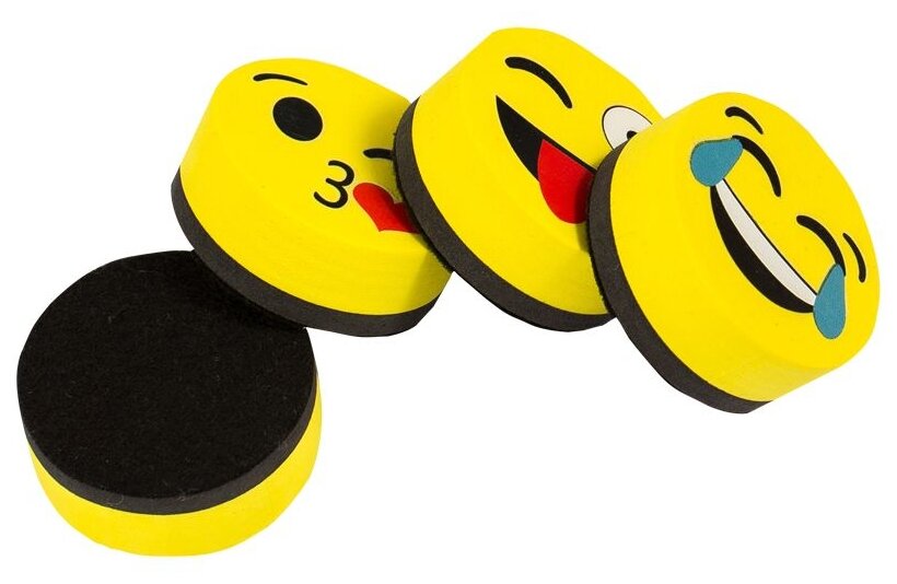 Губка-стиратель для маркерных досок OfficeSpace "Смайлик" (d=50мм, магнитная) желтая (261123)