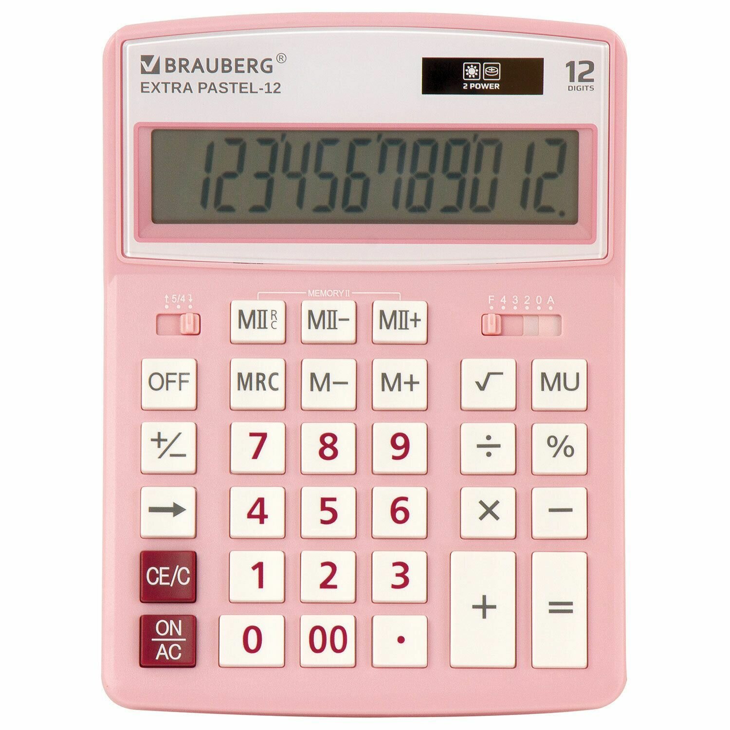 10 цен на Калькулятор настольный Brauberg Extra Pastel-12-PK, 12 разрядов, двойное питание, розовый (250487)