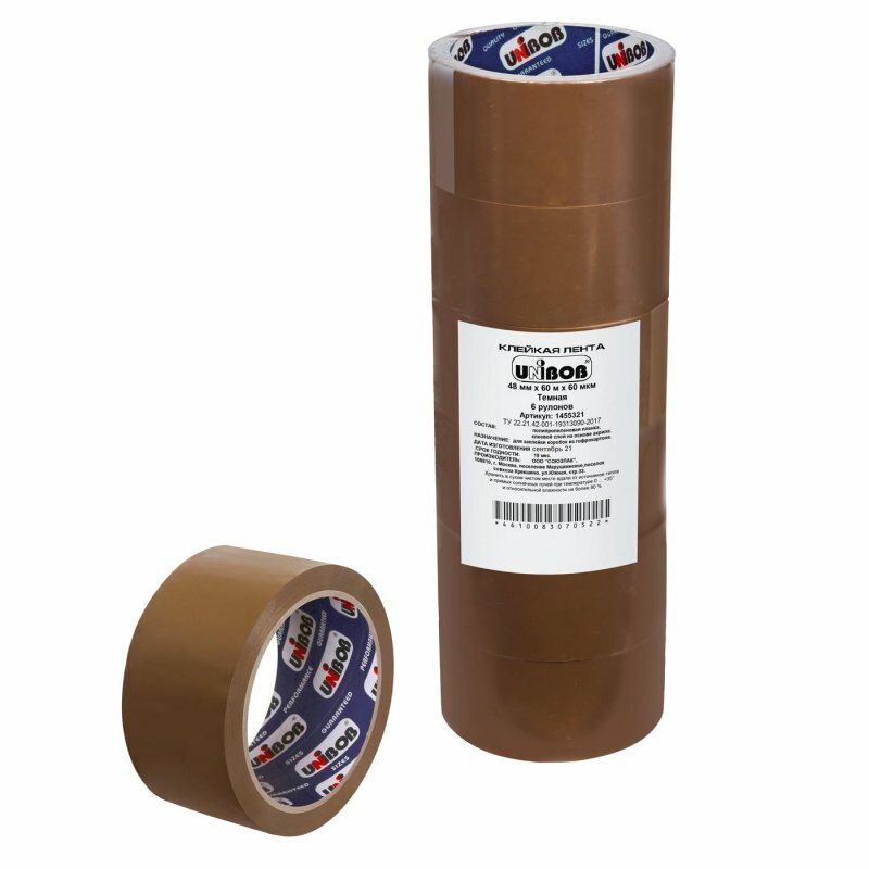 Клейкая лента Unibob упаковочная, 48 мм х 60 м 60 мкм, темная, 6 шт