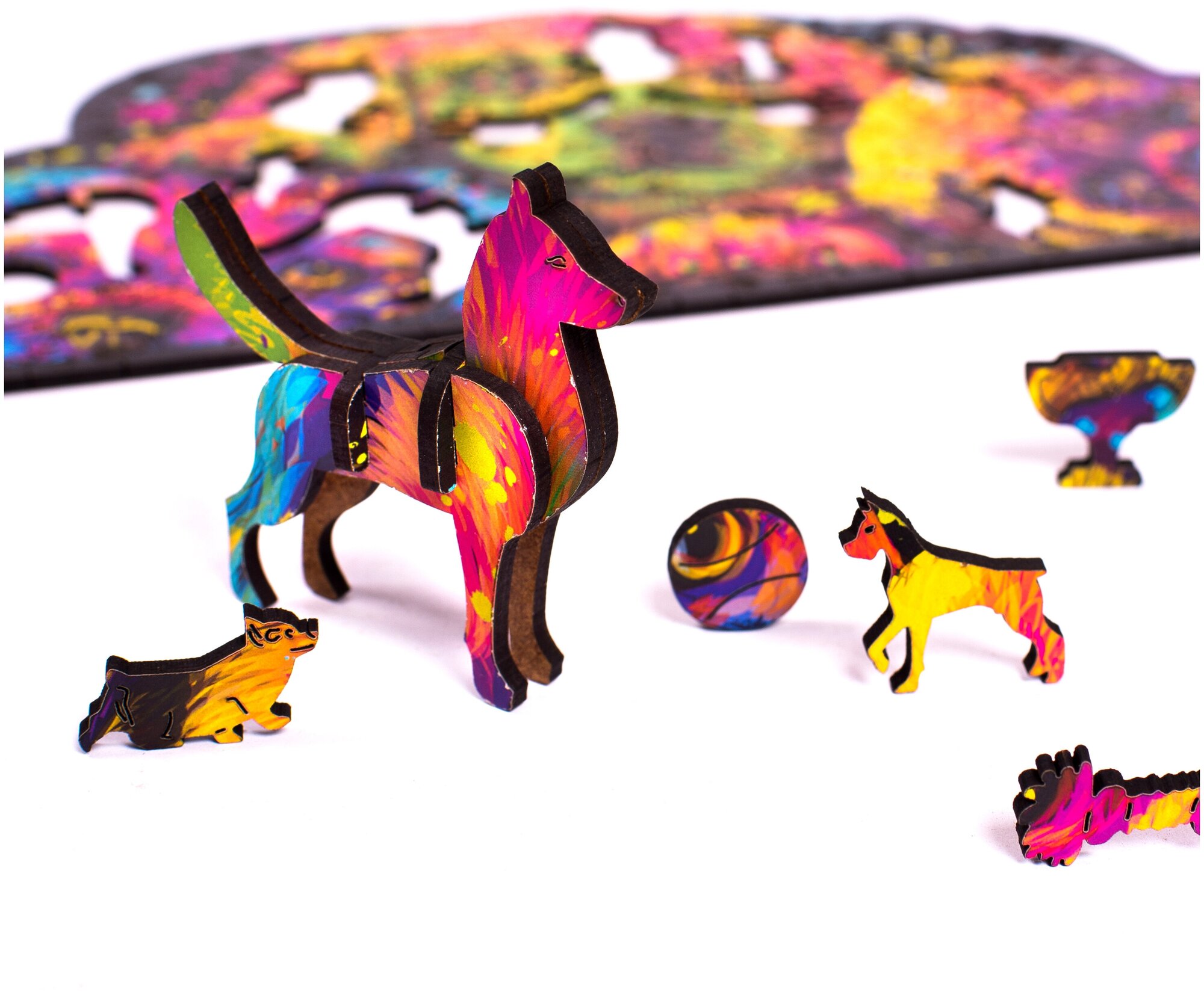 Деревянные пазлы для взрослых и детей Aterix / Развивающие игрушки и головоломки / Щенки М 181 деталь, размер 38х18 см.