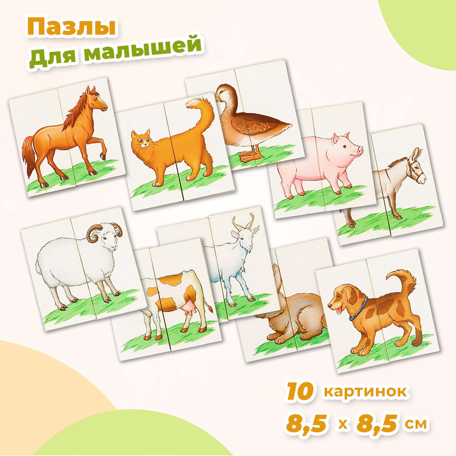 10 цен на Разрезные картинки-половинки с животными Smile Decor "Ферма", деревянный пазл для детей
