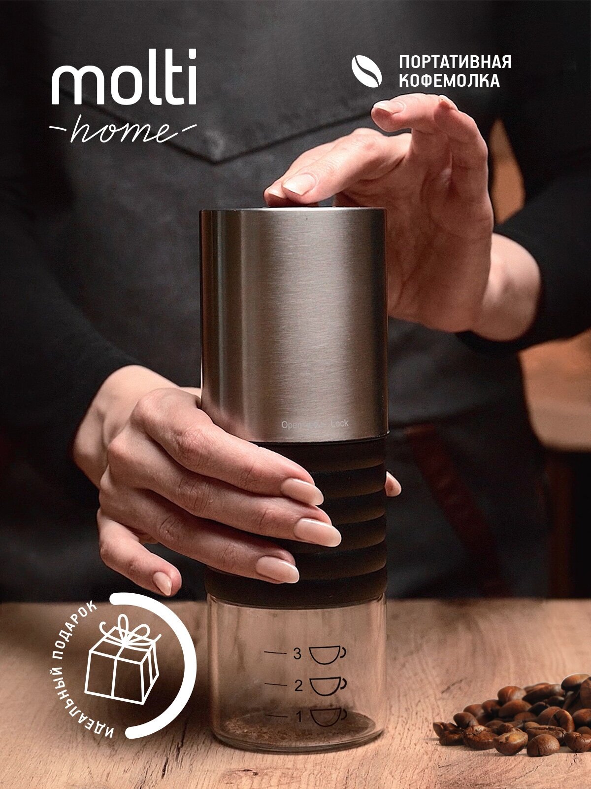 Характиристики этого товара не найдены!Отзывы на Портативная кофемолка ручная электрическая Moxie, серебристо-черная