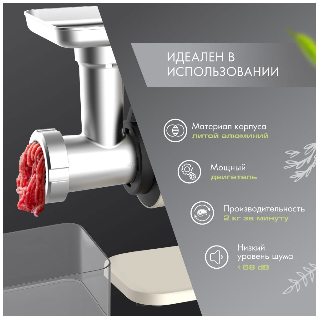 Мясорубка MI-07-G091/мощность 2000 Вт/медный двигатель/низкий уровень шума/реверс/3 диска 3,5,7 мм/алюминиевая форма
