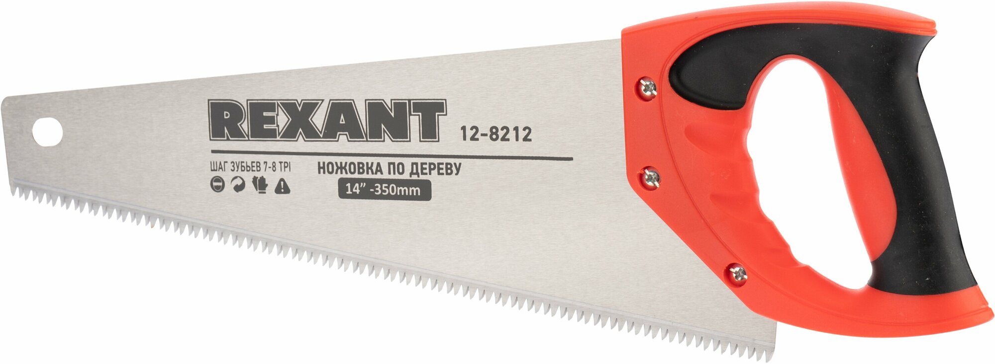 Ножовка по дереву REXANT Зубец 350 мм, 7-8 TPI, каленый зуб 2D, двухкомпонентная рукоятка
