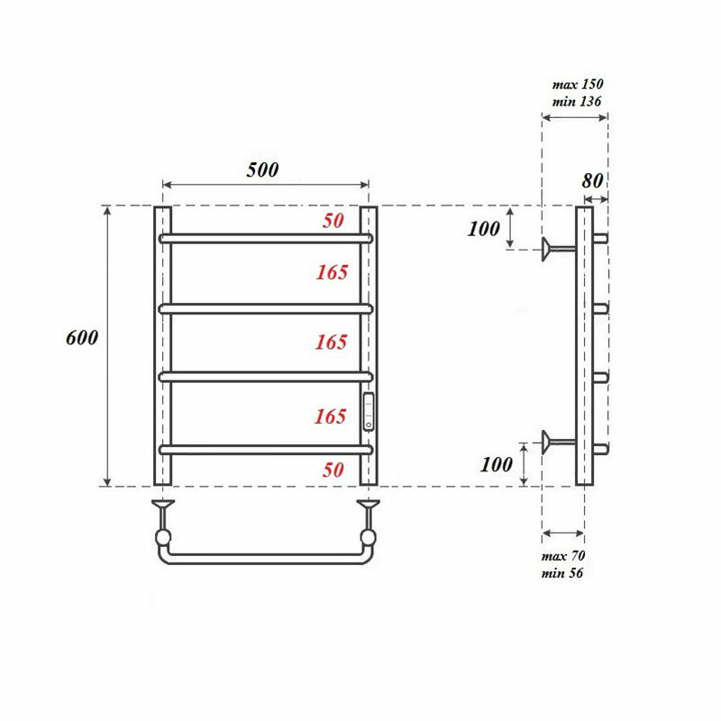Полотенцесушитель электрический 500x600 POINT Ника (PN08856 П4) диммер справа