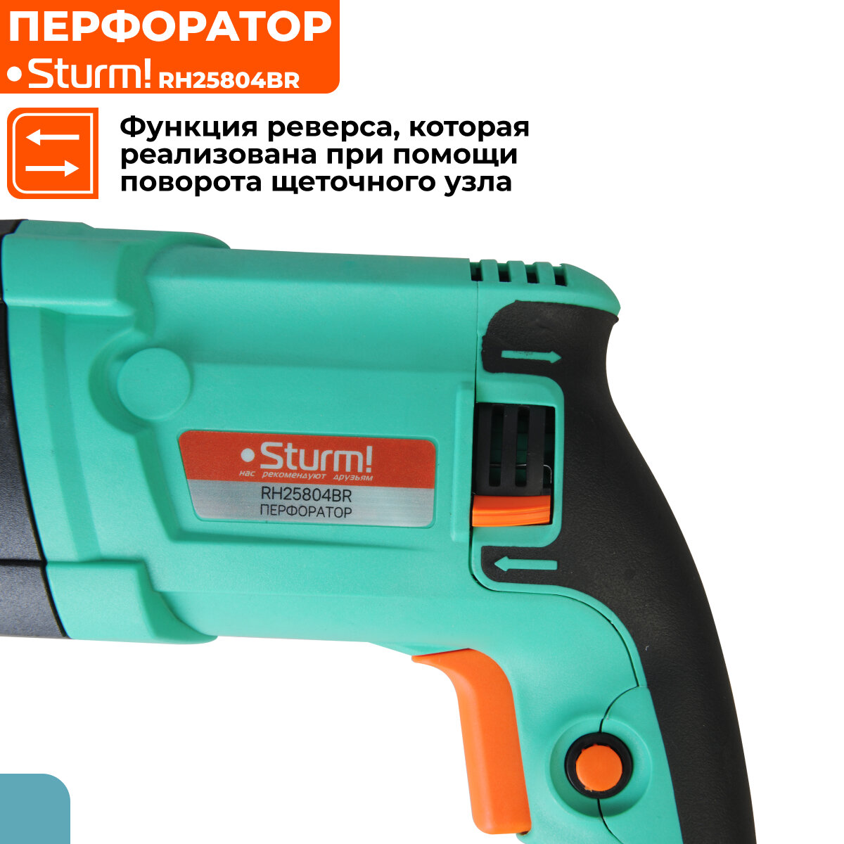 RH25804BR Перфоратор Sturm!, 800 Вт, 0-4850 уд/мин, 0-1100 об/мин, 3 режима 7 750 ₽