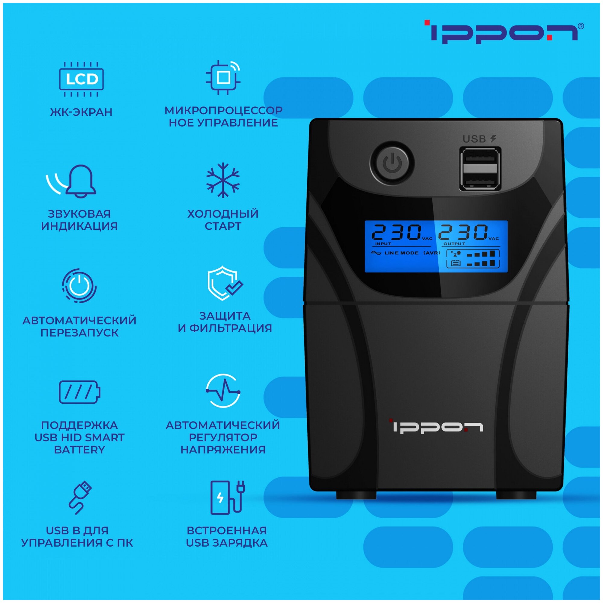 ИБП Ippon Back Power Pro II 850 850VA/480W LCD,RJ-45,USB (2 EURO) 8 925 ₽