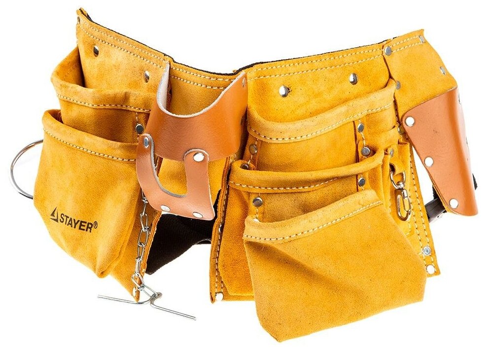 10 цен на STAYER кожаный, 10 карманов, 3 подвески, пояс для инструментов (38512)