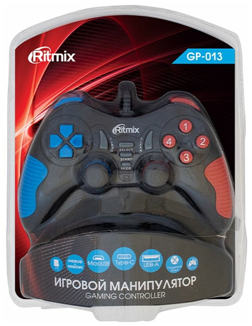 Отзывы на Геймпад проводной Ritmix GP-013 (USB+OTG / для Windows и Android / 1.5 м)