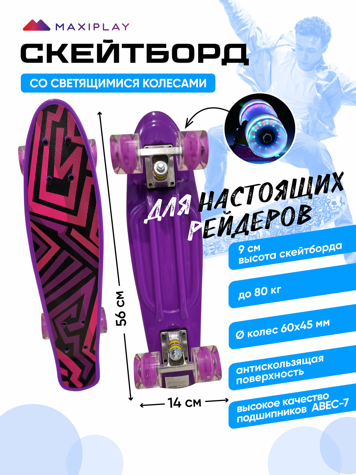 Скейтборд со светящимися колесами городской с антискользящим покрытием деки пластиковый, 56 см