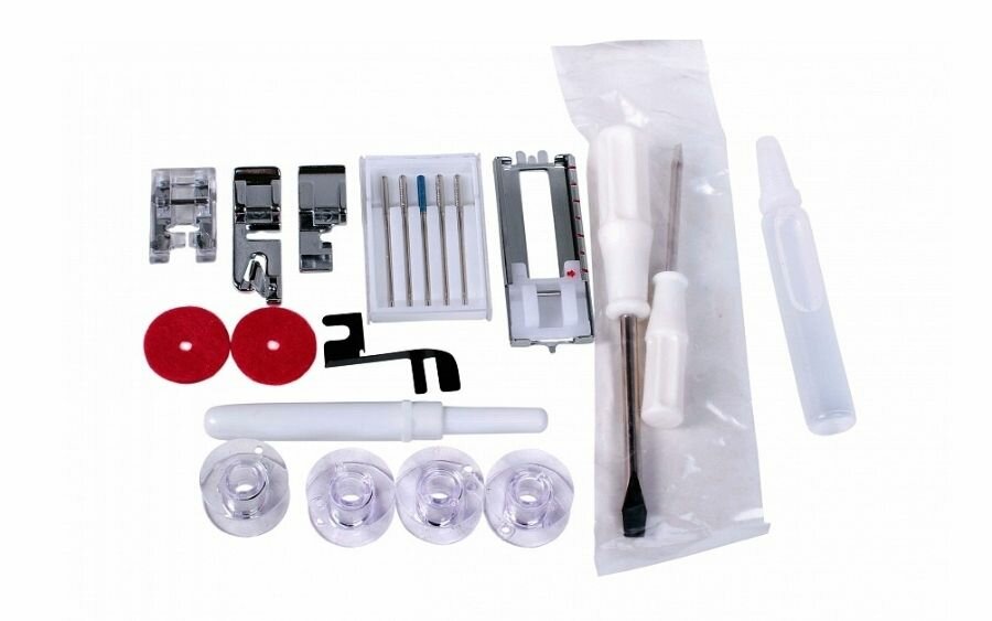 | Особенности конструкции | линейка на корпусе, нитевдеватель, отсек для аксессуаров, подсветка, рукавная платформа |