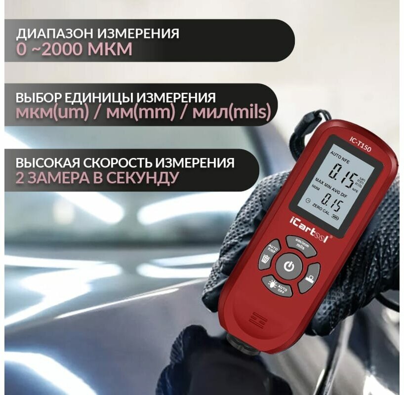 Толщиномер лакокрасочных покрытий iCarTool Fe/NFe IC-T150 информация:
