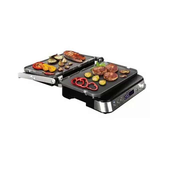 Отличный гриль, купил для дачи. Теперь жарим мясо только на нем. Достаточно большая площадь панелей позволяет пожарить сразу достаточное количество для нашей семьи. Но если компания большая, можно использовать его как барбекю, разложив прибор на 180 градусов. Для меня было важно наличие таймера и регулировки температуры на гриле, для того чтоб подобрать идеальный способ приготовления. Теперь не приходится постоянно проверять готовность мяса. Плюс ко всему, у прибора двухсторонние съемные панели, использовать можно не только как гриль, но и как обычную поверхность для жарки.