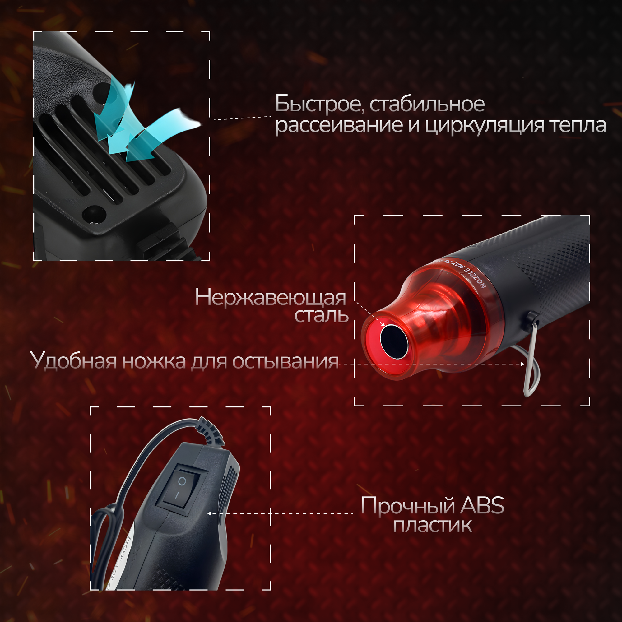 | Назначение | удаление краски / разморозка труб / размягчение покрытий / сварка пластика / изоляция проводов / подсушивание краски |