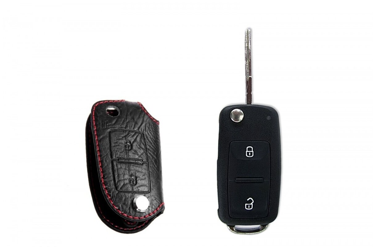 Чехол для ключа зажигания Volkswagen черный с красной нитью информация: