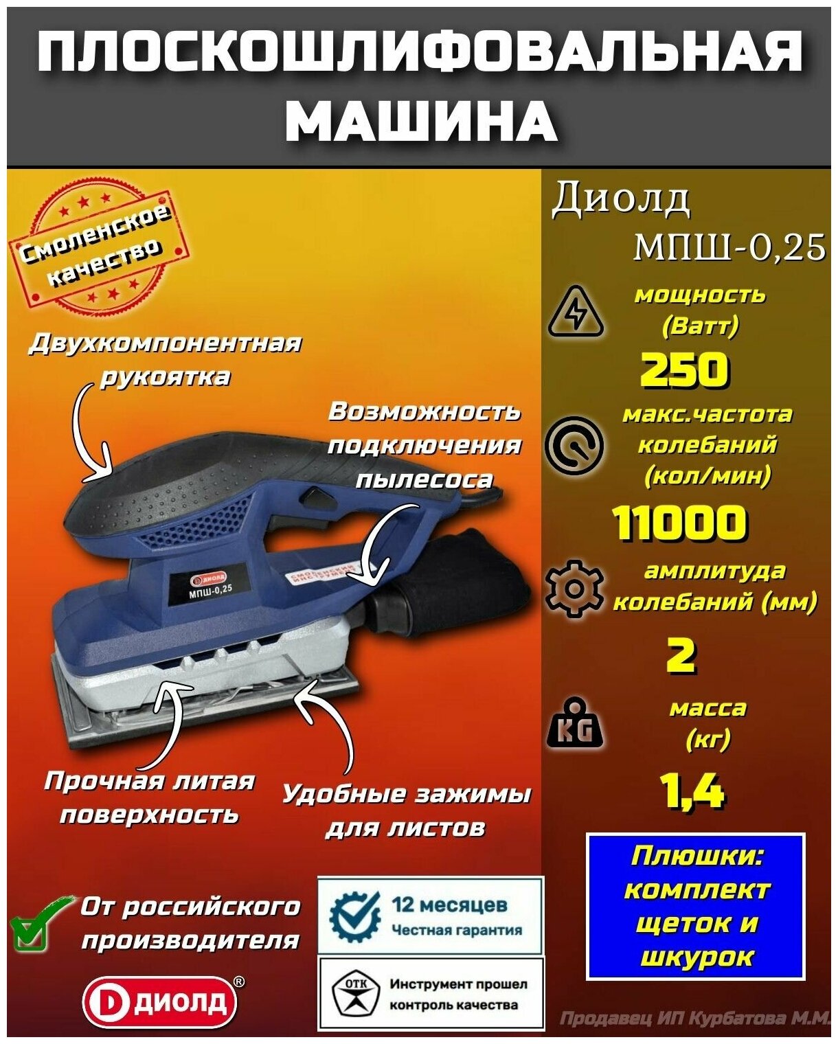 Машина шлифовальная вибрационная Диолд МПШ-0,25