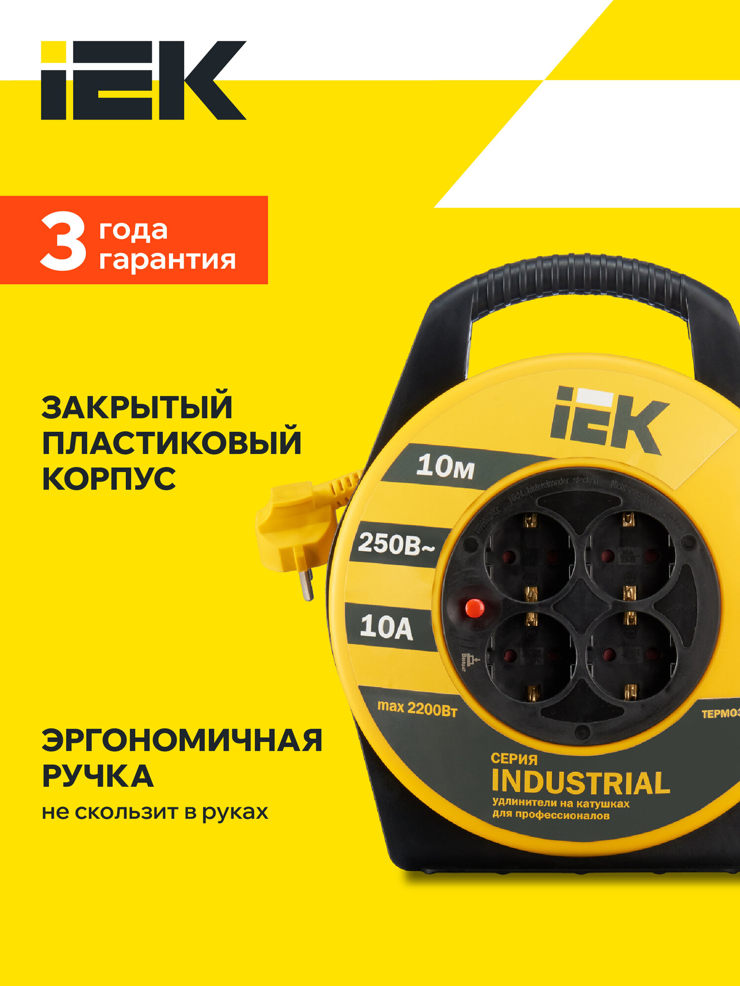 Отзывы на Удлинитель на катушке 4х10м с заземл. 10А IP20 Industrial УК10 3х1 термозащита IEK WKP14-10-04-10