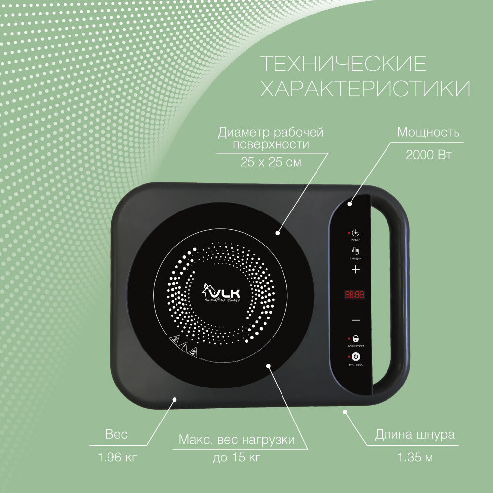 Индукционная плитка настольная электрическая VLK Palermo-7727 / 2000 Вт / до 15 кг / до 240 градусов / 8 уровней регулировки мощности