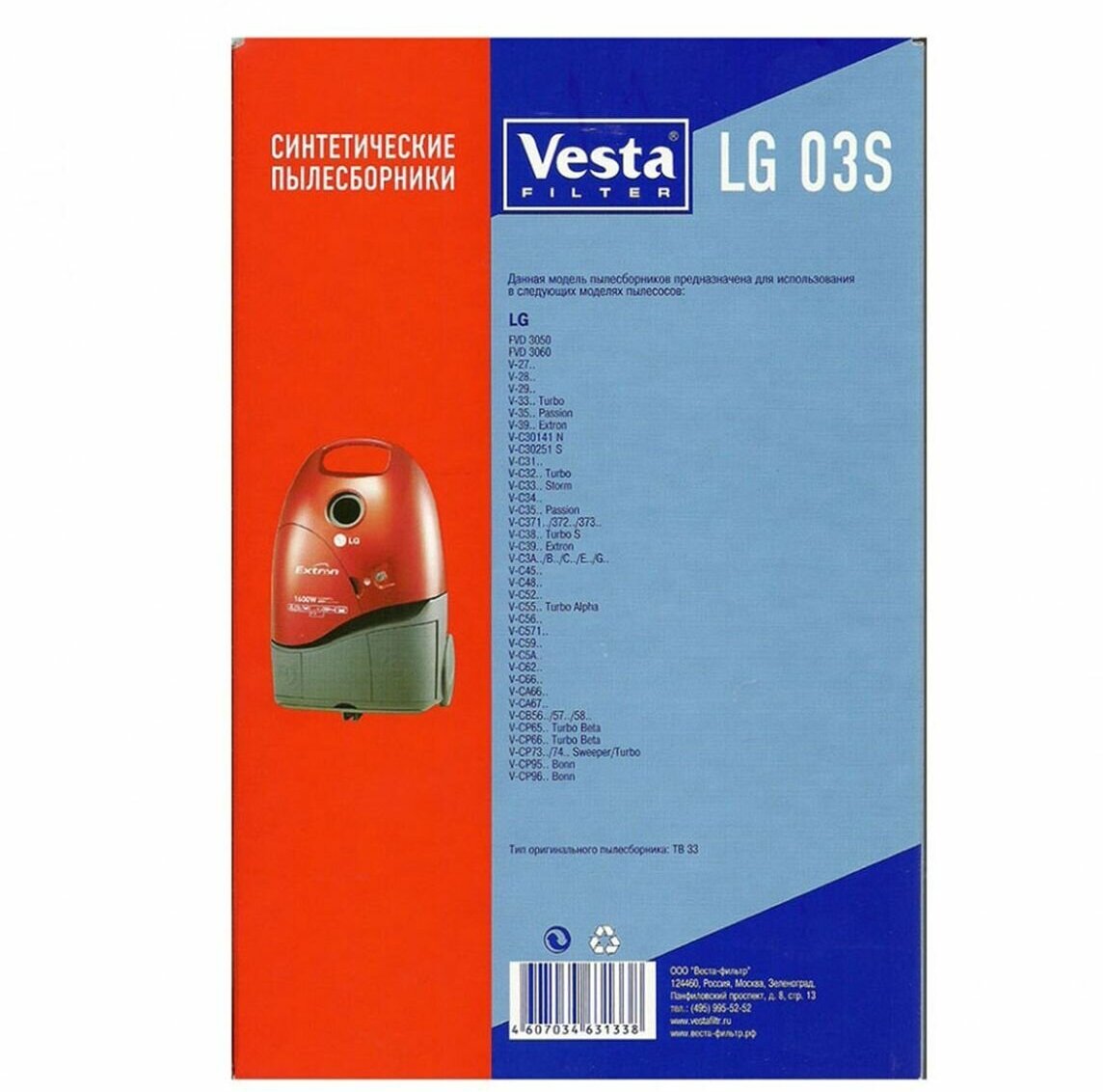 Vesta filter LG03S комплект мешков-пылесборников синтетических (4шт+ 2 фильтра) для пылесоса LG информация: